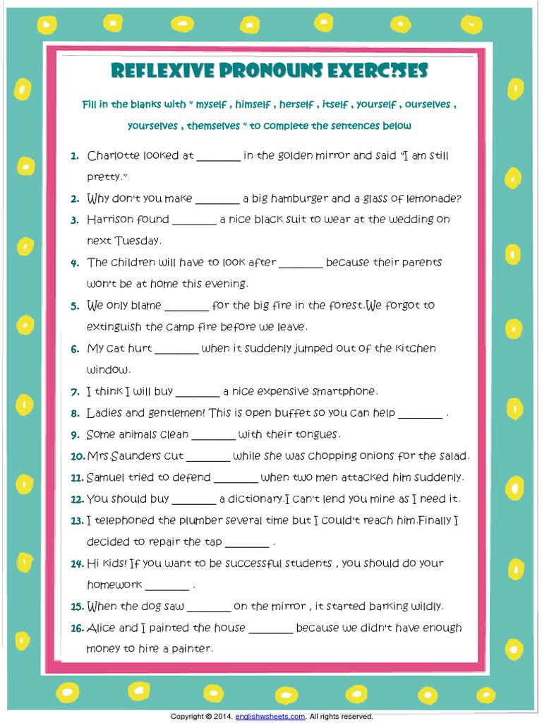 Esl Reflexive Pronouns Exercises Pdf